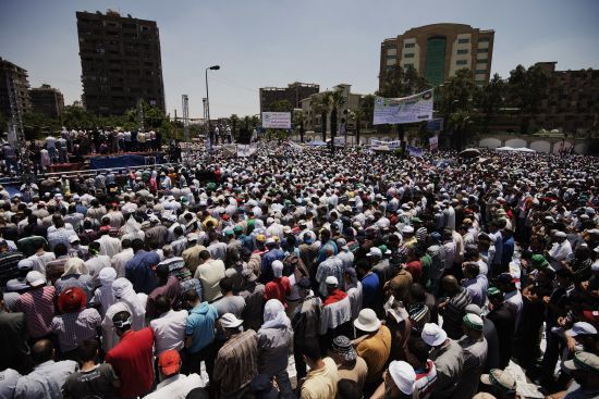 تظاهر عشرات آلاف الإسلاميين المصريين أمس الجمعة (21 يونيو/ حزيران 2013) دعماً للرئيس محمد مرسي في أجواء سادها التوتر مع المعارضة التي تدعو من جانبها إلى تحرك مكثف نهاية الشهر للمطالبة بتنحية الرئيس.