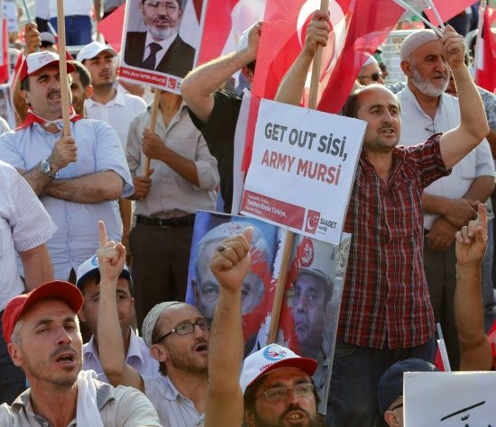 وفي إطار تأييد الأنظمة والتيارات الإسلامية لعودة الرئيس المعزول؛ تظاهر بضعة آلاف في العاصمة التونسية تلبية لدعوة حزب النهضة الإسلامي تأييداً لمرسي. كما تظاهر بضعة آلاف في اسطنبول استجابة لدعوة حزب السعادة الإسلامي الصغير لدعم مرسي الذي اعتبر رئيس الوزراء التركي رجب طيب أردوغان أنه مازال الرئيس الشرعي للبلاد، ونقلت عنه صحيفة تركية قوله في إفطار رمضاني مساء أمس الأول: «حاليّاً الرئيس في مصر هو مرسي؛ لأنه انتخب من الشعب».