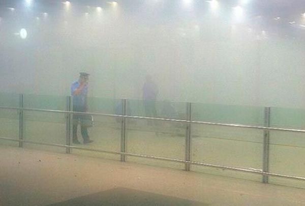 وافادت صور بثتها وكالة الصين الجديدة ان اشخاصا يبدو انهم من الجهاز الطبي يعالجون شخصا ممددا على الارض والناس تركض في محطة ركاب انتشر فيها دخان ابيض.
