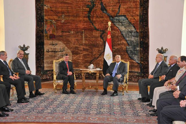 على صعيد آخر، قام العاهل الأردني الملك عبد الله الثاني أمس (السبت) بزيارة خاطفة إلى القاهرة هي الأولى التي يقوم بها رئيس دولة إلى مصر منذ الإطاحة بمحمد مرسي، وإثر زيارة العاهل الأردني إلى القاهرة، أصدرت الرئاسة المصرية بياناً أكدت فيه أن الرئيس المؤقت عدلي منصور استقبله وبحث معه «العلاقات الثنائية وسبل تعزيزها، وتطورات الأوضاع على الساحة المصرية، والمستجدات في الشرق الأوسط».
