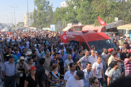 في إطار متصل، استخدمت قوات الأمن التونسية قنابل الغاز المسيل للدموع لتفريق مئات التونسيين الغاضبين الذين خرجوا في تظاهرات للتنديد باغتيال البراهمي.