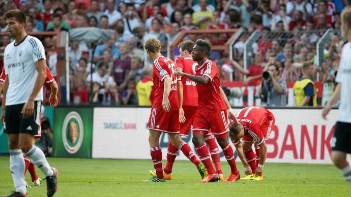 وسيطر بايرن منذ البداية على مجريات المباراة رغم قيام الأسباني جوسيب جوارديولا المدير الفني للفريق بإراحة العديد من نجومه مثل فرانك ريبيري وفيليب لام والوافد الجديد تياجو ألكانتارا الذين جلسوا على مقاعد البدلاء، وبدأ السويسري شيردان شاكيري مهرجان الأهداف بعدما سجل الهدف الأول لبايرن في الدقيقة 18 من عمر المباراة قبل أن يضيف المتألق توماس مولر الهدف الثاني في الدقيقة الأخيرة من الشوط الأول.ولم يتغير الحال في الشوط الثاني حيث استمرت سيطرة بايرن على اللقاء ليحرز توماس مولر الهدف الثالث في الدقيقة 59 من ركلة جزاء قبل أن يعاود اللاعب نفسه التسجيل مجددا ليحرز رابع أهداف الفريق البافاري في الدقيقة 64 مسجلا ثلاثة أهداف (هاتريك).
