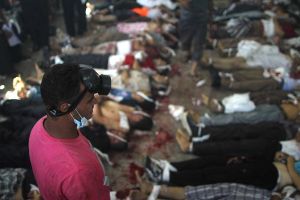 وألقت قوات الأمن الغاز المسيل للدموع على الآلاف من مؤيدي مرسي الذين أشعلوا النار في جزء من كنيسة بالمنيا.