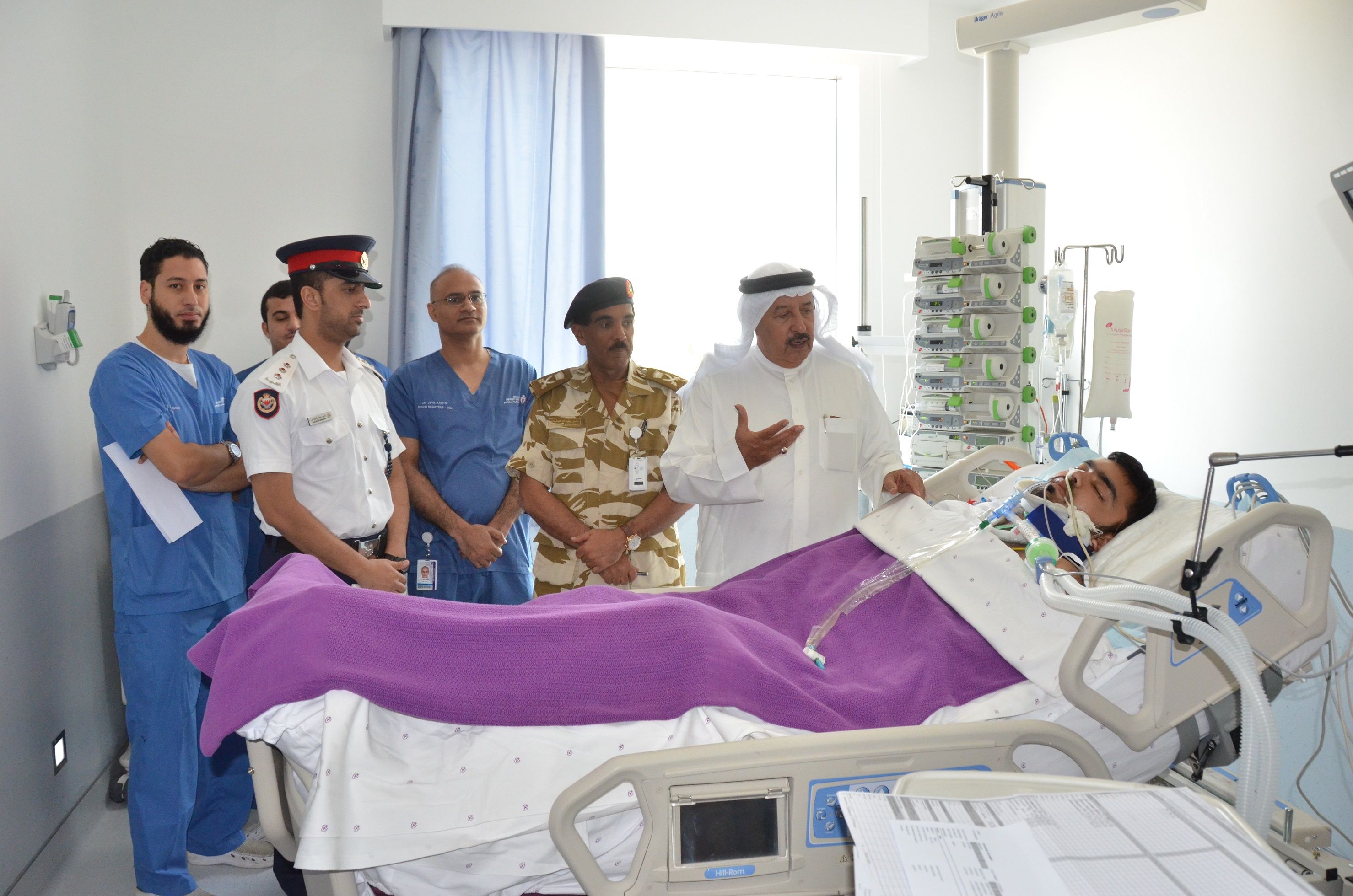 قام محافظ محافظة المحرق السيد سلمان بن عيسى بن هندي مع قائد مستشفى الملك حمد الجامعي اللواء الطبيب الشيخ سلمان بن عطيه الله آل خليفة اليوم الإثنين (19 أغسطس/ آب 2013) بزيارة رجل الأمن المصاب بحادث تفجير قرية الدير جراء قنبلة محلية الصنع وذلك للاطمئنان على سلامته ومتابعته حالته الصحية .