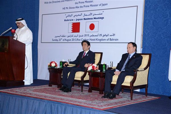 نظمت وزارة الصناعة والتجارة ملتقى الأعمال البحريني الياباني وذلك بحضور رئيس وزراء اليابان شينزو آبي ووزير الصناعة والتجارة ورئيس غرفة تجارة وصناعة البحرين وممثلين لمجلس التنمية الاقتصادية وجمعية الصداقة ورجال الأعمال البحرينية اليابانية وعدد من رجال وسيدات الأعمال، وذلك بفندق الريتز كارلتون .