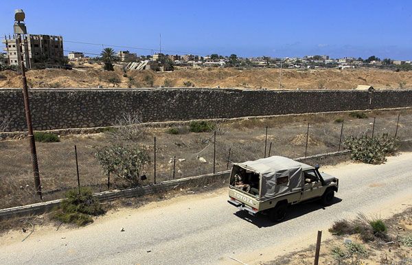 وشوهدت طائرة هليكوبتر طراز اباتشي تطير فوق منازل دمرت في الآونة الاخيرة في قرية المقاطعة جنوبي مدينة الشيخ زويد على بعد كيلومترات قليلة من قطاع غزة الفلسطيني.