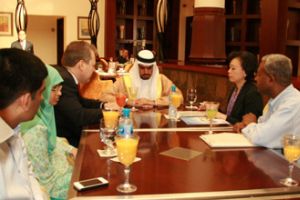 استقبل عاهل البلاد المفدى حضرة صاحب الجلالة الملك حمد بن عيسى ال خليفة بمقر اقامة جلالته بالعاصمة الصينية بكين اعضاء الوفد الرسمي المرافق لجلالته ورؤساء تحرير الصحف المحلية حيث اكد جلالته اهمية العلاقات القائمة بين مملكة البحرين وجمهورية الصين الشعبية وما وصلت اليه من تطور وتقدم في العديد من المجالات السياسية والاقتصادية والثقافية والتعليمية مؤكدا تطلع جلالته في ان تسهم هذه الزيارة في توثيق العلاقات مع جمهورية الصين لما لها من مكانة على الساحة الدولية ودور جمهورية الصين الشعبية في دعم قضايا الامن والاستقرار والسلام الدوليين .