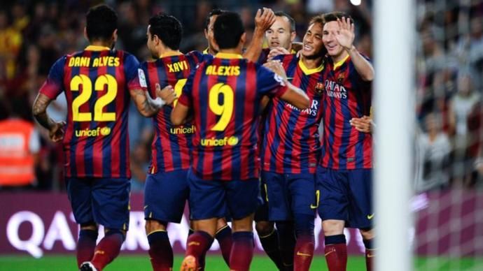 فعلى ملعب نو كامب وأمام أكثر من 70 ألف متفرج، هزم برشلونة منافسه في أول 8 دقائق حين سجل هدفين نظيفين الأول عبر البرازيلي نيمار (5) الذي استفاد من خطأ دفاعي واضح ثم ساهم بتسجيل الثاني من خلال عرضية تابعها الأرجنتيني ليونيل ميسي برأسه في الشباك (8).