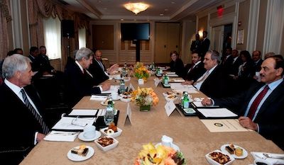 عقد وزراء خارجية دول مجلس التعاون برئاسة وزير الخارجية الشيخ خالد بن أحمد بن محمد آل خليفة، اجتماعاً ظهر أمس مع وزير الخارجية الأمريكية جون كيري، ووزير الدفاع تشاك هيغل، حيث تمت مناقشة عدد من القضايا الثنائية الأمنية في إطار منتدى التعاون الاستراتيجي بين دول مجلس التعاون والولايات المتحدة الأمريكية، وعلى وجه التحديد التعاون الأمني في المنطقة وزيادة قدرات مركز العمليات البحرية لدول مجلس التعاون في مملكة البحرين لتبادل المعلومات البحرية تعزيزاً للأمن والاستقرار في منطقة الخليج العربي.