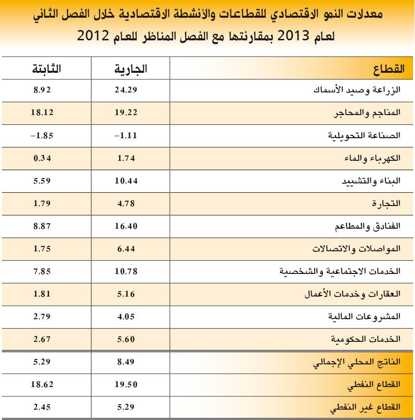 وعلى أساس سنوي قفز ناتج قطاع النفط والغاز 18.6 في المئة في الربع الثاني مع تعافي الإنتاج من حقل أبوسعفة النفطي الرئيسي المشترك مع السعودية بعدما شهد هبوطاً العام الماضي.