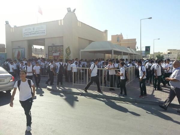 قالت نائبة رئيسة جمعية المعلمين البحرينية جليلة السلمان عبر موقع التواصل الاجتماعي تويتر أن طلاب التعاون الثانوية للبنين يغادرون المدرسة بعد إغراقها بمسيلات الدموع، إثر احتجاجهم على موعد امتحانات المنتصف.