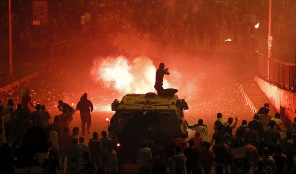 واندلعت كذلك اشتباكات على نطاق أصغر في محافظة الشرقية في شرق الدلتا وفي مدينة دمياط الساحلية حيث أصيب أحد أنصار مرسي. وفي 14 أغسطس آب فضت قوات الأمن اعتصامين لأنصار مرسي في القاهرة مما أدى الى مقتل مئات المدنيين. وسقط حوالي 57 قتيلا في اشتباكات بين أنصار مرسي وخصومه يوم الأحد. واعلنت الحكومة المدعومة من الجيش حالة الطوارئ وفرضت حظرا للتجول. واعتقل آلاف من أعضاء الإخوان المسلمين من بينهم مرسي نفسه.
