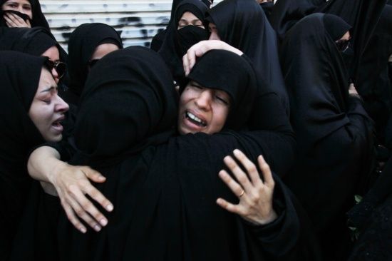 ...وتذكروا سيرة الرسول صلى الله عليه وسلم وخلفائة الراشدين المهديين من بعده أبو بكر وعمر وعثمان وعلي رضي الله عنهم بأنهم لم يرد عنهم مطلقا الصياح والنياح واللطم وتسييس الأمور فالميت يموت والرسول صلى الله عليه وسلم يشارك في الأفراح أولا ثم تعزية أهل المتوفي من دون إقامة مجالس للبكاء واللطم.