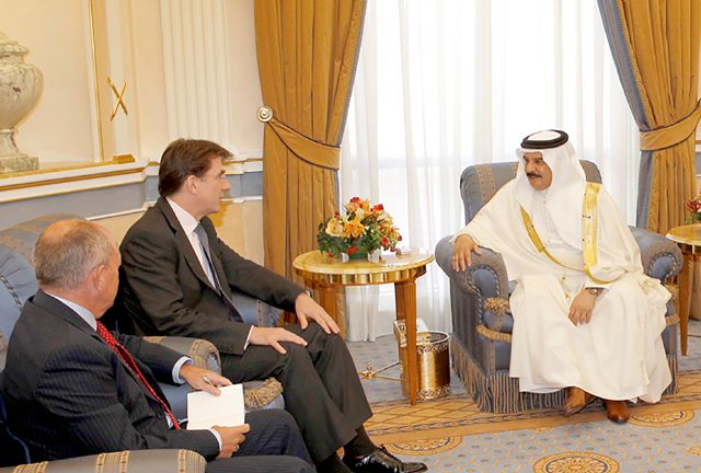 استعرض عاهل البلاد حضرة صاحب الجلالة الملك حمد بن عيسى آل خليفة مع سفير المملكة المتحدة في البحرين إيان لينزي، النتائج الايجابية والمثمرة للزيارة الناجحة التي قام بها جلالته للمملكة المتحدة مؤخراً ولقاءات جلالته مع عدد من كبار المسئولين بالحكومة البريطانية على صعيد دعم وتعزيز التعاون البحريني البريطاني.