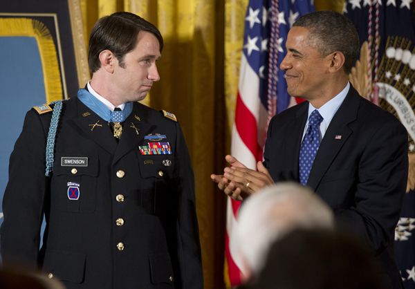 وكان قد اعلن في كانون الاول/ديسمبر 2009 عن منح الكابتن وليام سوينسون (34 عاما) وسام الشرف وهو ارفع وسام في الجيش الاميركي، على شجاعته خلال كمين في شرق افغانستان في الثامن من ايلول/سبتمبر 2009.