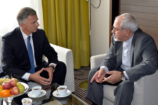 اجتمع وزير الخاردجية الإيراني محمد جواد ظريف مع نظيره السويسري ديدييه بورخالتر في جنيف اليوم الأربعاء (16 أكتوبر/ تشرين الأول 2013) على هامش اجتماع مفاوضين دوليين بشأن برنامج إيران النووي.