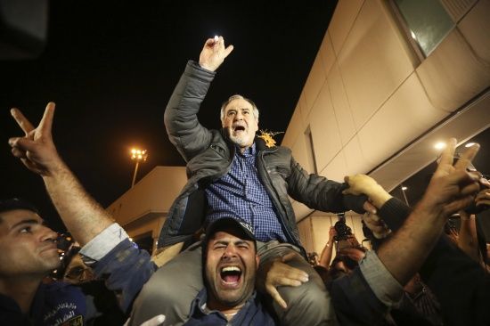 ووصل اللبنانيون التسعة في طائرة قطرية نزل منها أولاً، بحسب الصور التي نقلها مباشرة تلفزيون «المنار» التابع لحزب الله، مدير عام الأمن العام اللواء عباس إبراهيم الذي تولى التفاوض حول العملية، ثم تبعه اللبنانيون المحررون وقد بدوا في صحة جيدة.