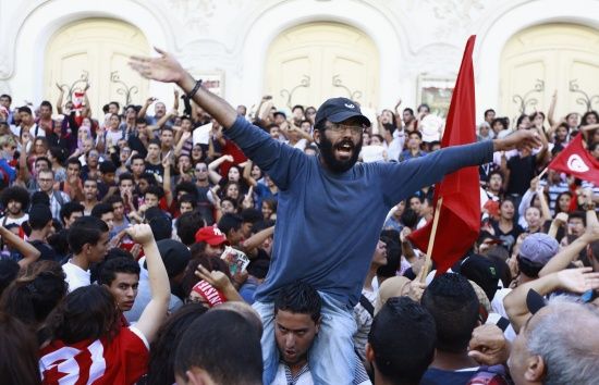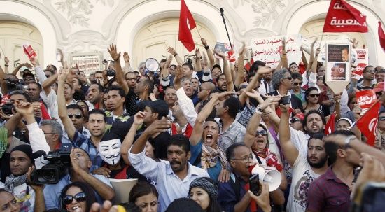 وردد المتظاهرون شعار «ديقاج» (إرحل) فيما هتف آخرون شعارات مناوئة لحركة النهضة ورئيسها راشد الغنوشي. واتجه المتظاهرون من شارع الحبيب بورقيبة إلى ساحة القصبة أمام مقر الحكومة لممارسة المزيد من الضغوط على حكومة علي العريض. وقال رئيس الهيئة السياسية للحزب الجمهوري المعارض والنائب المنسحب من المجلس التأسيسي أحمد نجيب الشابي، لوكالة الأنباء الألمانية (د.ب.أ) «الحوار الوطني يسير بشكل متعثر. وهذه المسيرة الشعبية تأتي للضغط من أجل تسريع وإنجاح الحوار ودفع كل الأطراف السياسية للتمسك بخريطة الطريق ومن بينها التزام الحكومة المؤقتة الحالية بالاستقالة في غضون ثلاثة أسابيع». وأضاف الشابي «إذا التزم العريض باستقالة حكومته في الآجال التي تنص عليها خريطة الطريق سينطلق الحوار وسيعود النواب المنسحبون إلى المجلس التأسيسي ويبدأ التشاور بشأن الشخصية الوطنية البديلة لرئاسة الحكومة الجديدة في ظرف أسبوع».