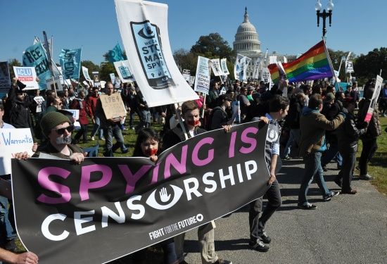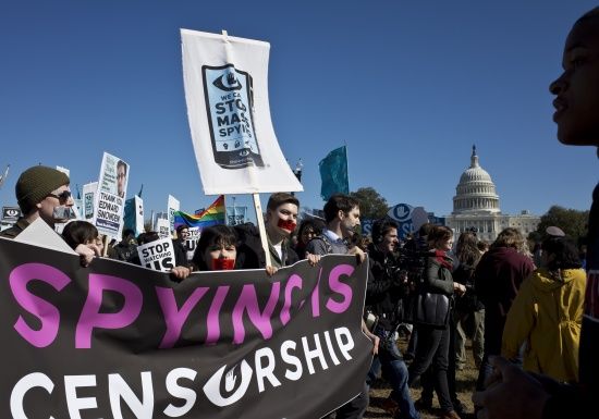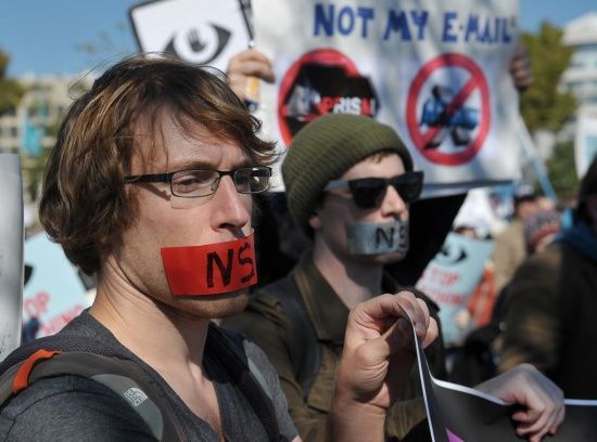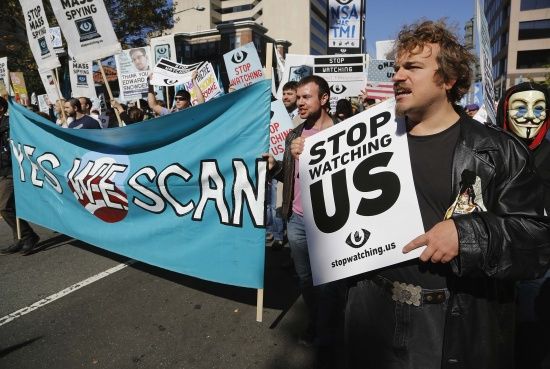 تظاهر آلاف المحتجين في واشنطن أمس الأول (السبت) للمطالبة بإقرار قانون لإصلاح برامج المراقبة التي كلفت بها وكالة الأمن القومي المتهمة بانتهاك الحياة الخاصة، وهم يرفعون لافتات كتب عليها «أوقفوا الأخ الأكبر» و»أوقفوا التجسس على الجماهير».