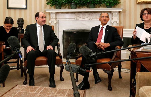 اعلن الرئيس الاميركي باراك اوباما انه بحث مع رئيس الوزراء العراقي نوري المالكي خلال لقائهما اليوم الجمعة (1 نوفمبر / تشرين الثاني 2013) في البيت الابيض كيفية التصدي لتنظيم القاعدة في العراق الذي يشهد موجة من اعمال العنف الدامية.
