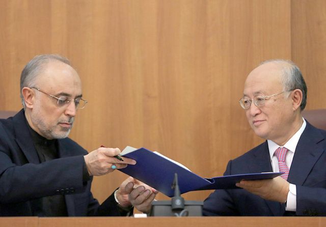 وأعلن رئيس المنظمة الإيرانية النووية علي أكبر صالحي في مؤتمر صحافي مشترك مع أمانو في طهران أن «البيان المشترك الذي تم التوقيع عليه اليوم (أمس) ينص على خريطة طريق للتعاون تحدد الخطوات المتبادلة لحل القضايا العالقة».