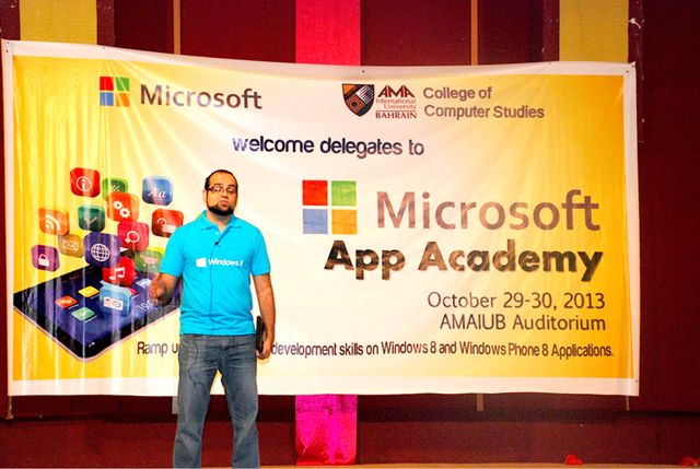 وقد أقيمت هذه الدورة من «أكاديمية مايكروسوفت للتطبيقات» تحت عنوان «عقدت تحت شعار «صمّم وطوّر تطبيقك الأول مع ويندوز 8.1»، وهدفت الندوة التدريبية التي عقدت على مدى يومين إلى تعريف المشاركين بنظام التشغيل «ويندوز 8.1» وتضمنت تدريباً مكثفاً على مبادئ تصميم تطبيقات للهواتف الذكية والأجهزة اللوحية (tablets) وحاسوب المكتب (desktops). هذا بالإضافة إلى عرض مبادئ تصميم واستخدام برنامج فيجول أستوديو (Visual Studio) 2013) مع توفير أمثلة داخل غرفة التدريب. كما سلطت الدورة الضوء على مختلف المراحل من التصميم إلى التنفيذ وعرض أدوات ومميزات ويندوز 8.1، وكذلك تطرقت إلى كيفية تحويل التطبيقات إلى مشاريع تجارية مربحة.