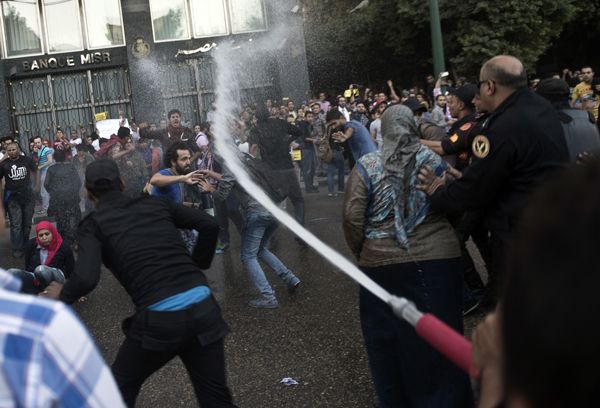 وفي ساعة متأخرة من مساء الثلاثاء استخدمت الشرطة القنابل المسيلة للدموع في ميدان طلعت حرب بوسط القاهرة لتفريق متظاهرين نزلوا بعد القبض على النشطاء للاحتجاج على توقيفهم وكانوا يرددون هتافات مناهضة لوزير الدفاع الفريق اول عبد الفتاح السيسي ووزير الداخلية اللواء محمد ابراهيم.