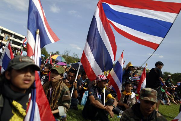 وكان متظاهرون مناهضون للحكومة في بانكوك قد استهدفوا أمس الجمعة مقر الحزب السياسي الحاكم ومقر الجيش والسفارة الأمريكية في محاولتهم للإطاحة بحكومة رئيسة الوزراء ينجلوك شيناواترا.وهتف أكثر من ثلاثة آلاف متظاهر "ارحلي يا ينجلوك، ..ارحل أيها الشر" خارج مقر حزب "بويا تاي" الذي يقود الحكومة الحالية التي كانت هدفا لمظاهرات حاشدة هذا الشهر.