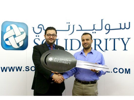 وقدم المدير المساعد للعلاقات العامة لدى شركة «سوليدرتي التكافل العام»، جلال عاقلة، الجائزة للفائز الذي أعرب عن خالص شكره وتقديره لشركة «سوليدرتي» بهذه المناسبة السعيدة. وصرح عاقلة قائلاً: «نحن سعداء بمشاركة المغربي فرحته كما نتقدم بخالص تهانينا له على فوزه بالجائزة الكبرى للسحب الثاني».
