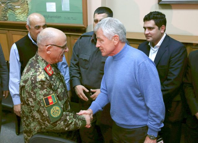 لكن الوزير هيغل التقى وزير الدفاع الأفغاني باسم الله محمدي. وقال هيغل إن محمدي «أكد لي أن الاتفاق الأمني سيوقع خلال مهلة معقولة» إلا أنه لم يحدد تاريخ التوقيع على هذا الاتفاق محور خلاف بين السلطات الأفغانية والأميركية.