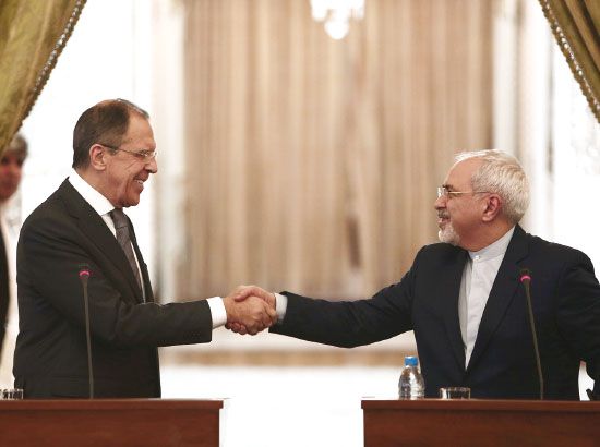 من جانبه، قال ظريف إن من نتائج التعاون بين بلاده وروسيا وقف الحرب ضد سورية. وأشار إلى التشاور والتعاون بين البلدين على مختلف الأصعدة، وقال إن اتفاق جنيف بين إيران والدول الست كان ثمرة المباحثات مع روسيا وباقي الأطراف.