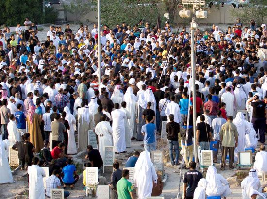 شيع البحرينيون يوم أمس السبت (14 ديسمبر/ كانون الأول 2013) ضحايا قرية العكر في حادث «الخفجي» إلى مثواهم الأخير.