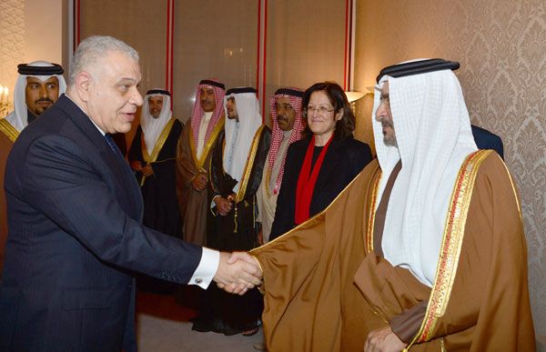 وأعرب سموه لدى لقائه بقصر الرفاع اليوم الاثنين (23 ديسمبر/ كانون الأول 2013) بوفد الدبلوماسية الشعبية بجمهورية مصر العربية الشقيقة و الذي يضم نخبة من رموز السياسة والثقافة والأدب والفن والصحافة والإعلام عن تقديره لمواقف مصر الداعمة للقضايا العربية باعتبارها العمق العربي الاستراتيجي.