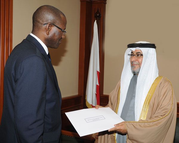 استقبل وزير الدولة للشؤون الخارجية غانم فضل البوعينين ، بمكتبه بالديوان العام للوزارة، صباح اليوم الثلثاء (28 يناير / كانون الثاني 2014) سفير جهورية بوركينا فاسو الصديقة والمقيم في الرياض، انسا أونتانا ، إذ تسلم البوعينين نسخة من أوراق اعتماده كسفير لبلاده لدى مملكة البحرين.