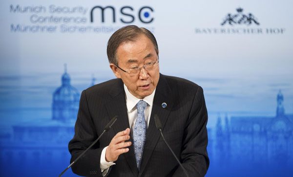 قال الامين العام للامم المتحدة بان جي مون اليوم الخميس (6 فبراير / شباط 2014) إنه واثق من أن سوريا ستلتزم بمهلة تحل في 30 يونيو حزيران للتخلص من برنامجها للاسلحة الكيماوية بالكامل بموجب خطة روسية امريكية.