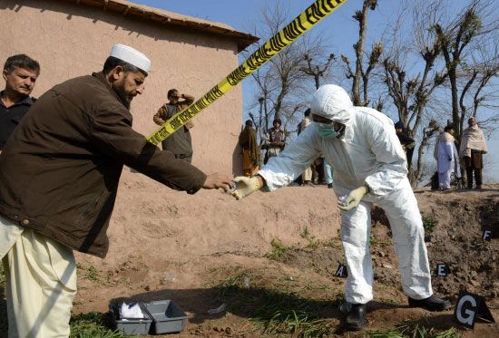 وصرح مسئول آخر في الشرطة الباكستانية نجيب الرحمن أن متمردين قدموا من منطقة خيبر القبلية واستهدفوا عمداً تسعة