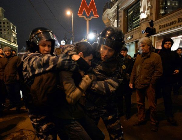 يمثل مئات المعارضين امام المحكمة اليوم الثلثاء (25 فبراير / شباط 2014) في موسكو، غداة توقيف اكثر من 400 شخص خلال تظاهرة قرب الكرملين للاحتجاج على احكام بالسجن صدرت بحق ثمانية متظاهرين يعارضون الرئيس فلاديمير بوتين.