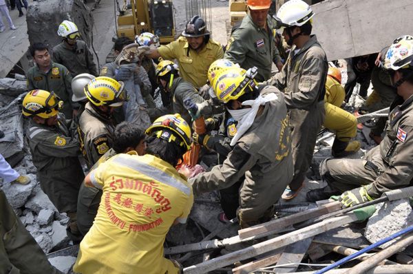 ويبحث عمال الانقاذ عن ناجين قد يكونون محاصرين تحت الأنقاض فيالموقع الذي يبعد 20 كيلومترا عن مطار سوفارنابهومي في بانكوك.