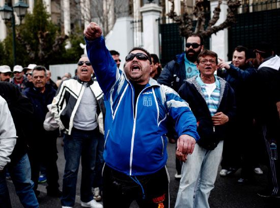 اليونان: تظاهر مئات من عمال الشحن والتفريغ المضربين في اليونان أمام البرلمان أمس (الأربعاء) احتجاجاً على خطط الحكومة لخصخصة هيئة ميناء بيريه. وصرحت سلطات الميناء لوكالة الأنباء الألمانية (د.ب.أ) بأنه رغم الإضراب على مدار اليوم، استمرت خدمات العبارات بشكل منتظم بأنحاء اليونان ولم يتأثر بالإضراب سوى عمليات الشحن والتفريغ الخاصة بسفن الشحن والناقلات - afp