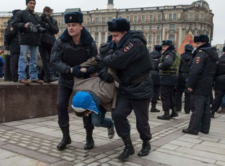 ووفقا لهذا الموقع فإن نحو 1500 شخص تظاهروا في العاصمة الروسية موسكو ضد قرار مجلس الاتحاد الروسي الذي يسمح للجيش الروسي باستخدام القوة في أوكرانيا مشيرا إلى أن الشرطة الروسية تعاملت بعنف ضد المتظاهرين.