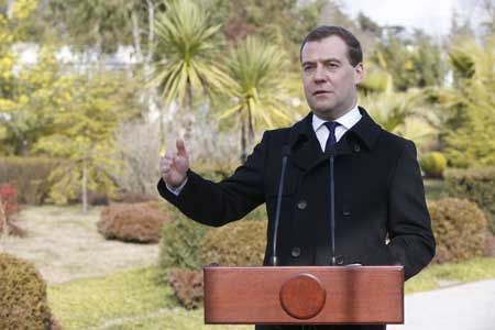 واكد مدفيديف استعداد روسيا لتطوير "علاقات متعددة الجوانب ومحترمة مع البلد الشقيق اوكرانيا"، ولكن ليس مع السلطات الانتقالية التي حلت محل يانوكوفيتش.