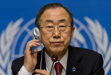طالب أمين عام الأمم المتحدة بان كي مون اليوم الإثنين (3 مارس / آذار 2014) المجتمع الدولي بإنهاء الحرب الدموية في سوريا، وحث سلطات كوريا الشمالية على العمل مع المجتمع الدولي لتحسين ظروف حقوق الإنسان في البلاد.