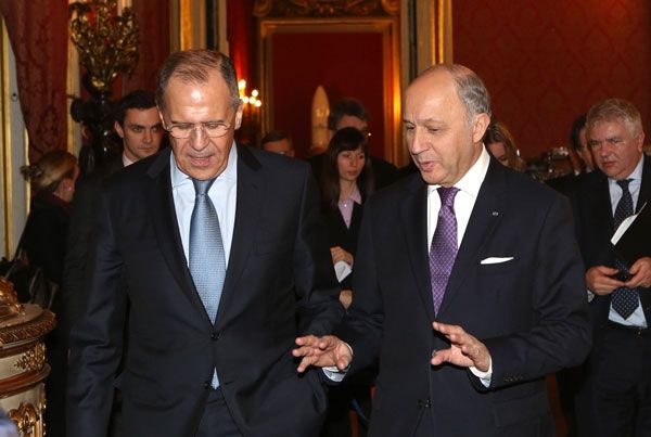 وفي مكتب وزير الخارجية الفرنسي لوران فابيوس، اجتمع لافروف مساء بنظرائه الاميركي جون كيري والالماني فرانك فالتر شتاينماير والبريطاني وليام هيغ ووزيرة خارجية الاتحاد الاوروبي كاثرين اشتون.