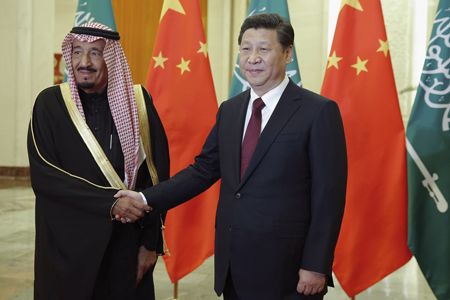 والتقى الأمير سلمان بعد ذلك الرئيس الصيني شي جين بينغ وأجرى معه محادثات ثنائية لتعزيز الشراكة الاستراتيجية بين السعودية والصين.