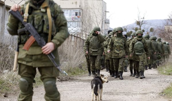 ونفت السلطات المؤيدة لروسيا في القرم انه توجد أي قوات روسية على شبه الجزيرة خارج قاعدة سيفاستوبول رغم ان مسلحين ملثمين يحيطون بالمنشآت العسكرية الاوكرانية يتحركون في عربات عليها لوحات معدنية روسية وقدموا أنفسهم للجنود الاوكرانيين على انهم قوات روسية.