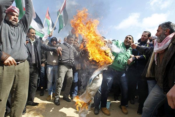 تظاهر أردنيون اليوم الجمعة (14 مارس / آذار 2014) لمطالبة الحكومة بإغلاق السفارة الإسرائيلية والغاء اتفاقية السلام مع اسرائيل بعد مقتل قاض أردني برصاص جندي إسرائيلي عند معبر حدودي.