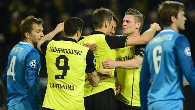 وكان دورتموند وصيف بطل اوروبا فاز 4-2 في لقاء الذهاب الذي أقيم في روسيا لكن زينيت تقدم في الدقيقة 16 لمباراة العودة بعد تسديدة هائلة من مدى بعيد.