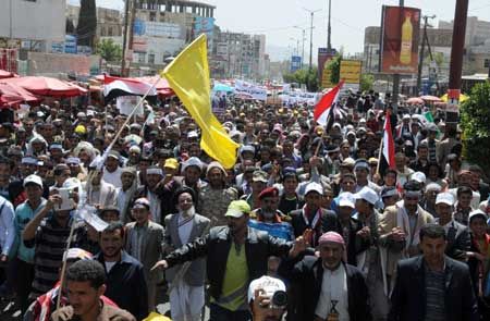 وانطلقت المظاهرة من ساحة التغيير بصنعاء مساء اليوم، وجابت عددا من الشوارع وصولا الى منزل الرئيس اليمني عبد ربه منصور هادي بشارع الستين غرب العاصمة .