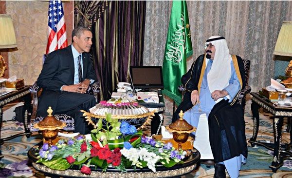 استقـبل خادم الحرمين الـشـريفـين الـملك عبدالله بن عبدالعزيز آل سعود في روضة خريم اليوم الجمعة (28 مارس / آذار 2014) رئيس الولايات المتحدة الأميركية باراك أوباما والوفد المرافق له .