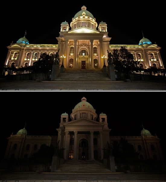 واطفئت الانوار لساعة في موقع الاكروبول في اثينا وفي نحو خمسين موقعا رمزيا في باريس مثل برج ايفل ومبنى البلدية وكاتدرائية نوتردام وقوس النصر وساحة الكونكورد.